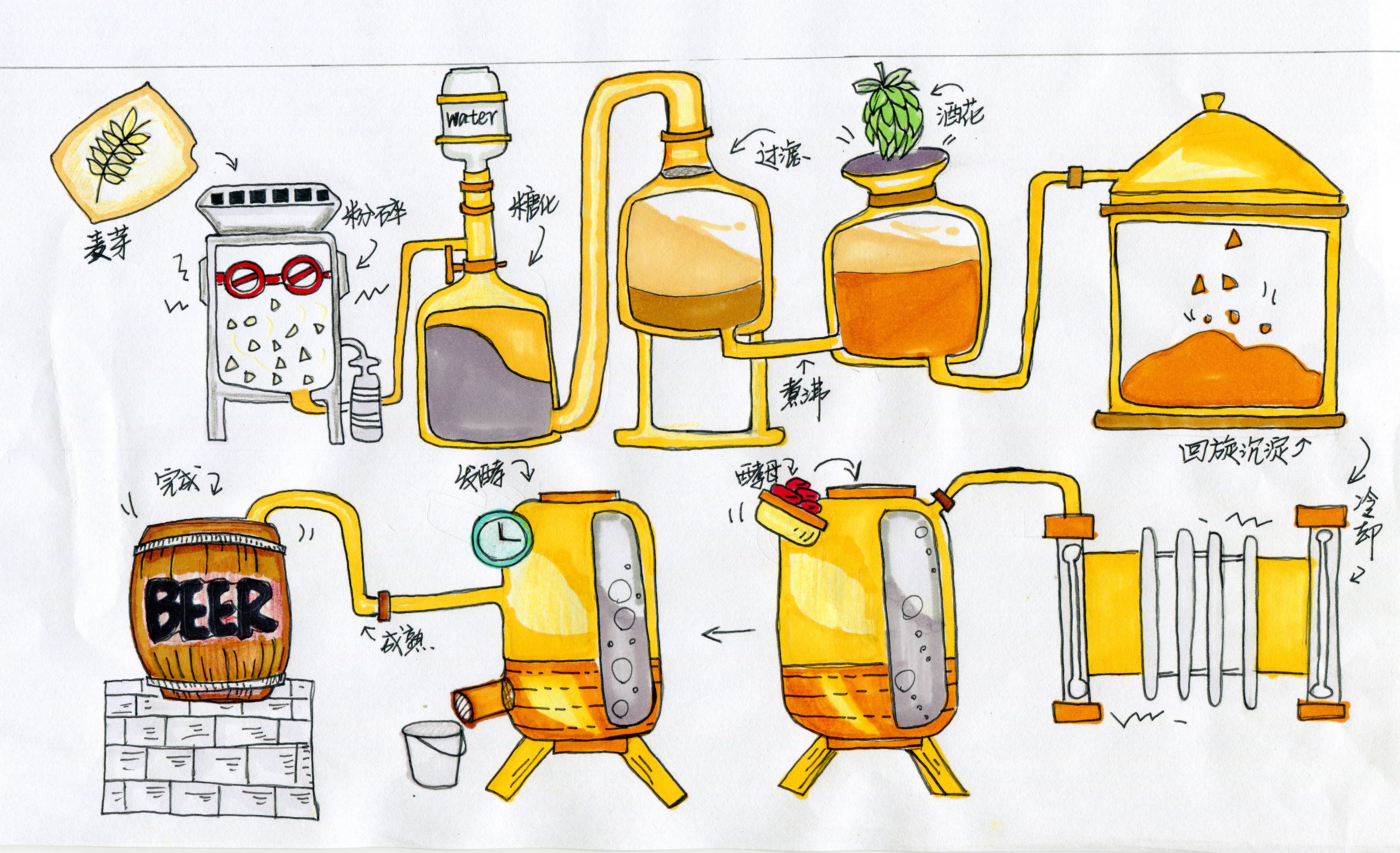 在發(fā)酵的過(guò)程中,溫度的控制十分關(guān)鍵。一般的艾爾酵母的主發(fā)酵溫度是18-22℃,拉格酵母的最適主發(fā)酵溫度是8℃-10℃,但具體的發(fā)酵溫度還需要的根據(jù)所用酵母的最適溫度確定